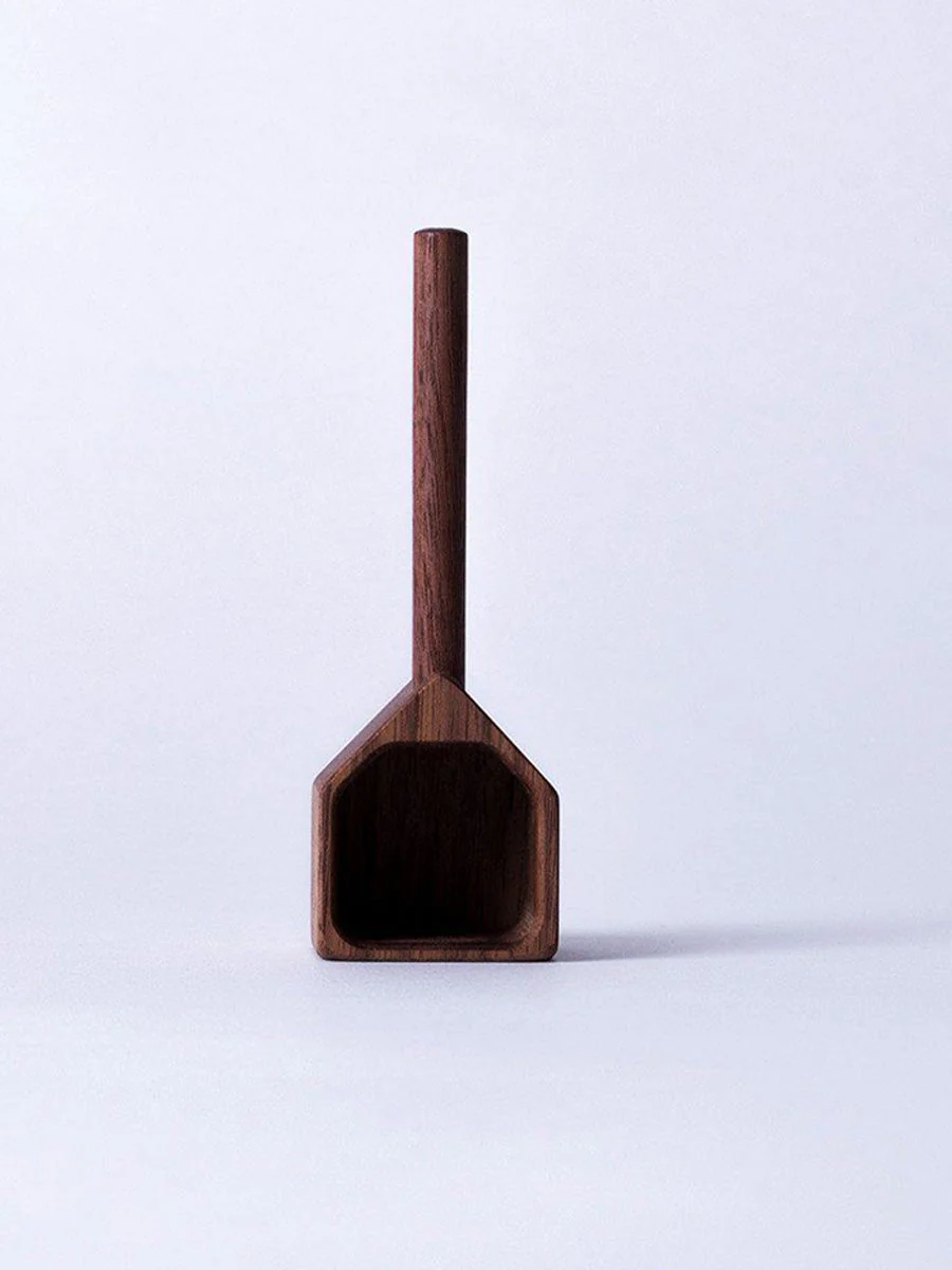 With its distinctive grain and rustic handle, this practical 10 gram scoop has been modeled by designer, Takahashi Nakabayashi, to resemble a tiny Japanese house.Ā